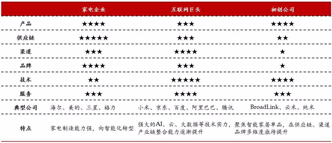行业主要竞争者可以分为三类——传统家电企业、互联网巨头、创业企业。
