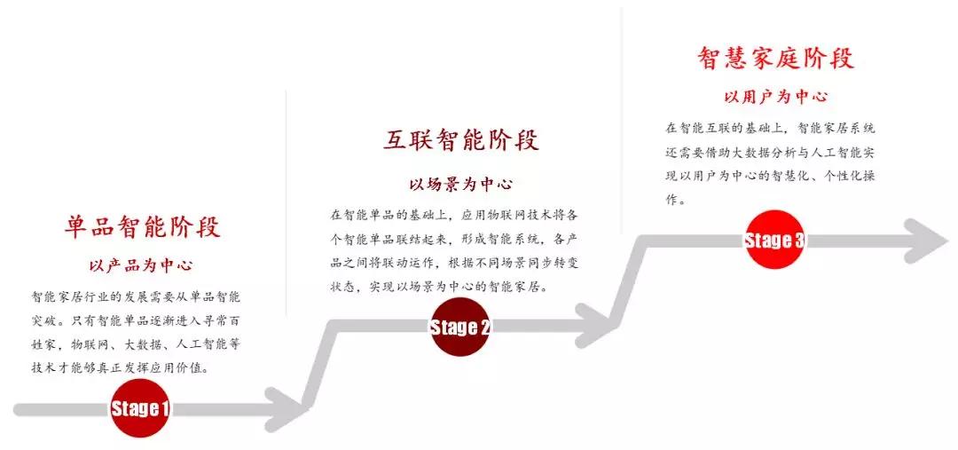 基于以上分析,我们认为智能家居的发展可以分为三个阶段: