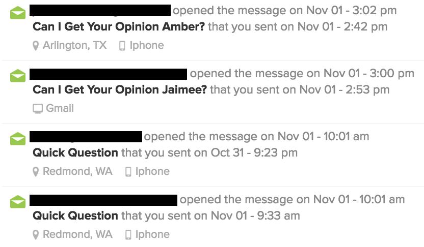 如果他们只打开你的邮件一次,那么这次尝试就算失败了。但是,如果他们多日内多次打开,那你就在4-5天之后再次进行联系。在最终得到对方回复、达成交易之前,我本人曾亲自联系一些人达8-10次之多。