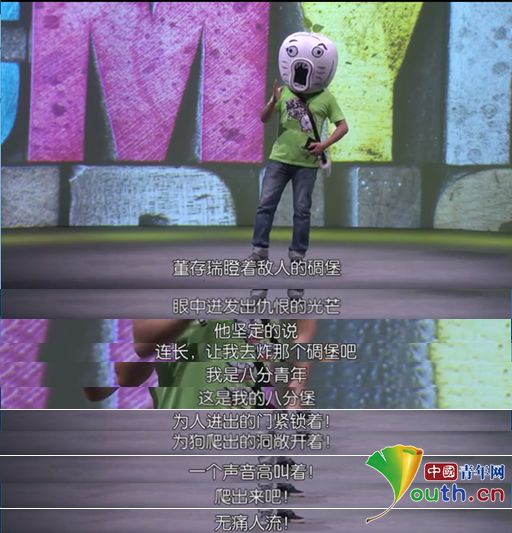 “董存瑞瞪着敌人的碉堡,眼中迸发出仇恨的光芒,他坚定地说,连长,让我去炸那个碉堡吧。我是八分青年,这是我的八分堡。(八分堡是一种汉堡)”