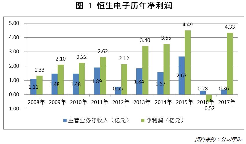 2017年,恒生电子实现营业收入26.66亿元,同比增长22.86%,其中主营业务净收入(营业总收入-营业总成本)0.36亿元,其他经营收益2.49亿元,最终实现净利润4.33亿元。