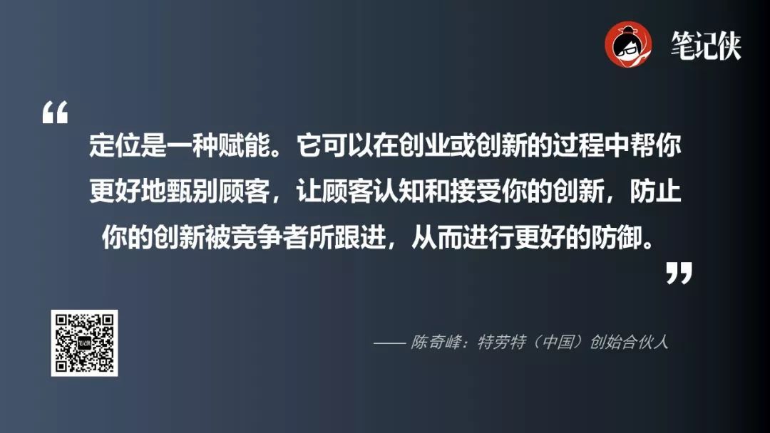 同样,定位也是一种赋能。它可以在创业或创新的过程中帮你更好地甄别顾客,更好地让顾客认知和接受你的创新,防止你的创新被竞争者所跟进,从而进行更好的防御。