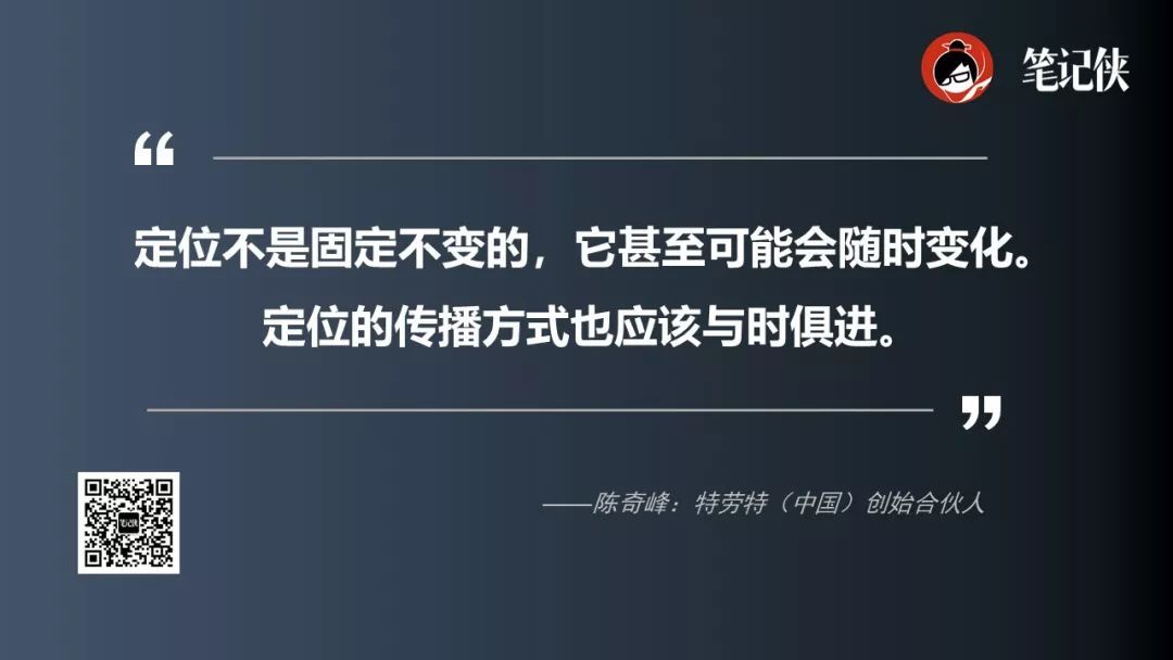 同时,定位的传播方式也应该与时俱进。它不单单靠广告,还有很多新的传播平台、表现形式。