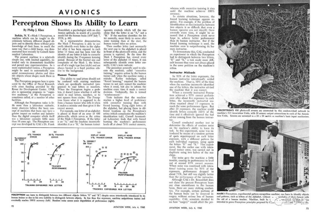 Rosenblatt称,此感知机不仅能学会识别图像这样的小任务,还能从理论上教机器走路、说话和表达感情。