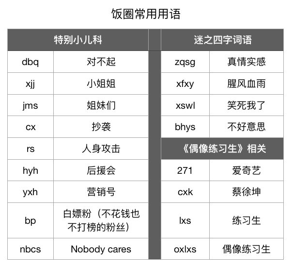 老实说,在「卧底」饭圈之前我最期待也最恐惧的就是缩写暗语。这种圈内术语就像是一层天然屏障,将所有想窥探、看戏或吃瓜的路人都挡在城墙之外。