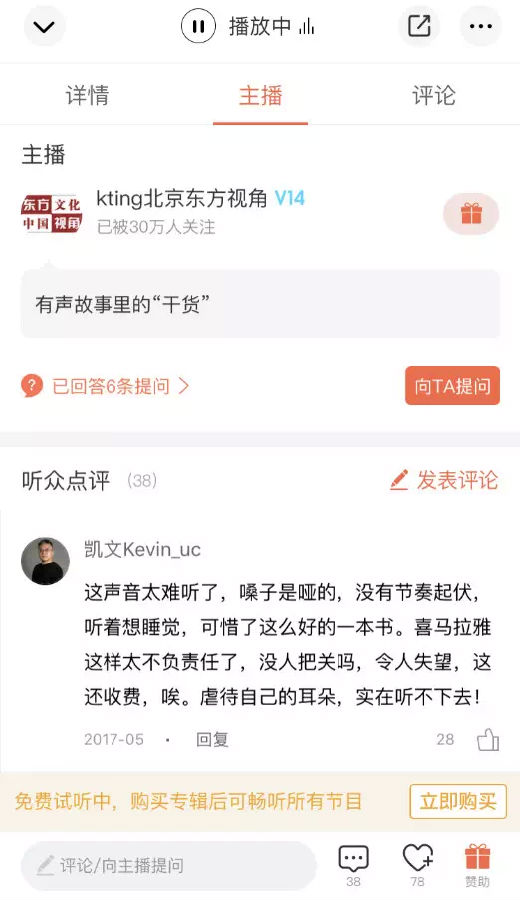 1、AI的背后是人,如果人不想解决某个问题,那么AI也只是噱头和摆设。最近,在某草根公众号中看到一篇文章,名叫《欲加之罪,何患无词》,谈论的是有关喜马拉雅APP内容付费的问题,该公众号的主人在喜马拉雅上传了自己解读书籍《乌合之众》音频,后突然因版权投诉而被下架了。喜马拉雅方面的客服称因为已经有解读该书的付费音频存在,所以再上传解读该书的音频就算作是侵权。对于某一个单一的知识付费内容能不能垄断市场暂且不论,这个唯一被平台认可的《乌合之众》付费音频下面的评论却显示出这个付费的内容并不尽如人意。