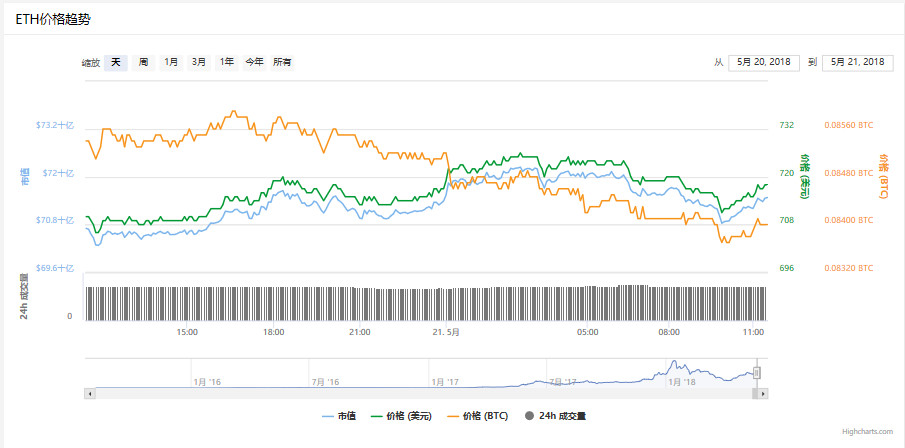 截止发稿前,数据显示,ETH价格波动不大。 (图片来源:非小号)