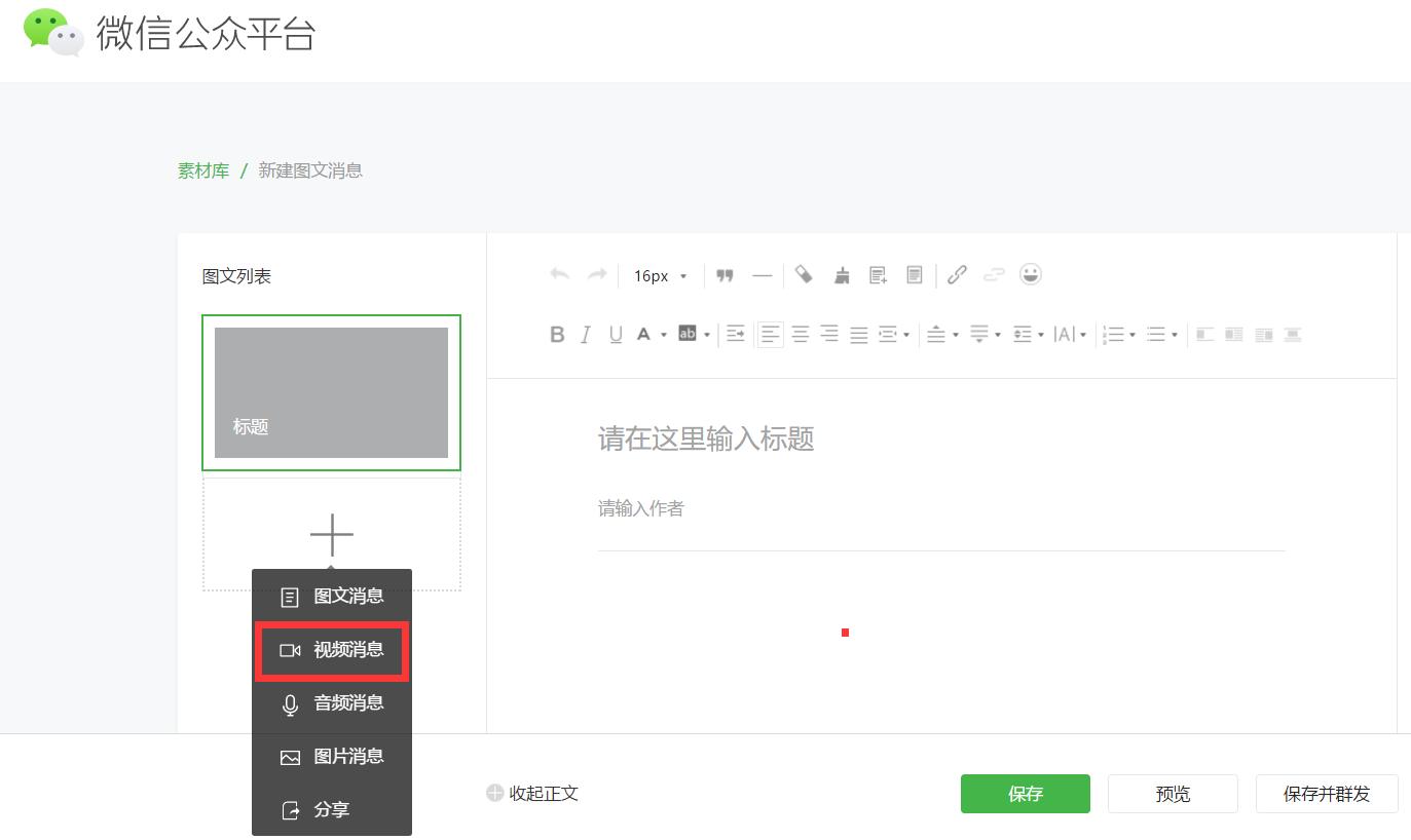 短视频领域做开放或许不仅仅是说一说而已,因为微信在内容领域的动作向来消无声息,说来就来有时毫无征兆。细心的公众号运营者或许可以发现,早前微信公众号后台有了重大改版,在新建图文—添加图文下面,可以直接添加视频消息、音频消息、图片消息等。