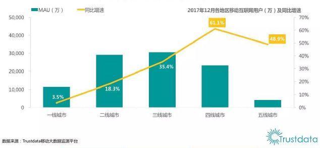 与此相对应的逻辑是,2017年,移动互联网加速向下线城市渗透,四线甚至五线城市成为新的增长热土。
