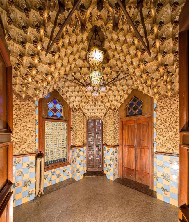 维森斯之家是高迪最早的建筑作品,有著浓厚的东方伊斯兰风格。围墙栏杆采用建筑界新引进的铸铁材料,棕梠叶造型可谓高第自然元素的开端代表,装饰采用石材、陶瓷、砖瓦的混合镶砌,造就奇特的视觉感受。