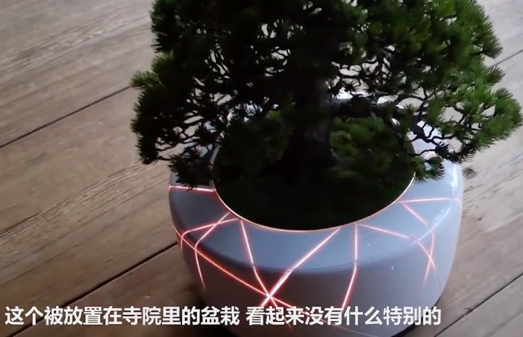 这款智能盆栽,还内置有各种感应装置,能监测土壤中的水分,在土变干的时候用充满禅意的灯光,提醒僧人们为其加水,甚至还能追逐阳光,自动到阳光充足的地方。