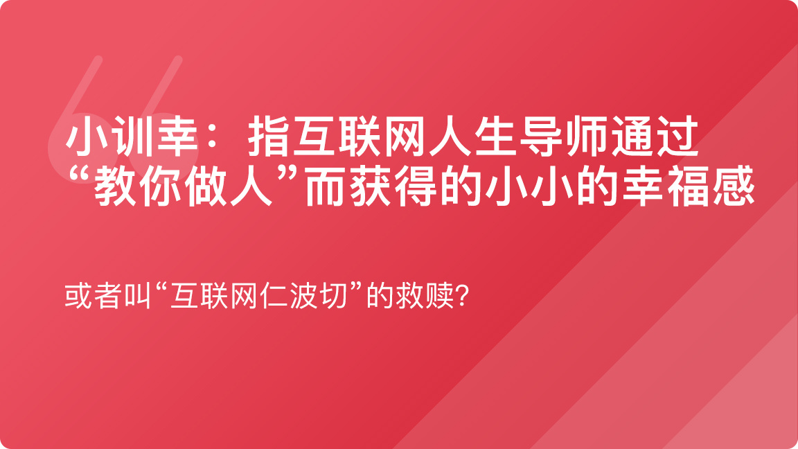 小训幸的主体们通常以自己的经验为基准,对他人的人生进行瞬时判断和即时指导,比方说“不分留着过中元节?”“是 gay,不爱你,下一题”“收礼物还拒绝表白,绿茶婊没跑”,从而获得一种野生仁波切式的自我陶醉。