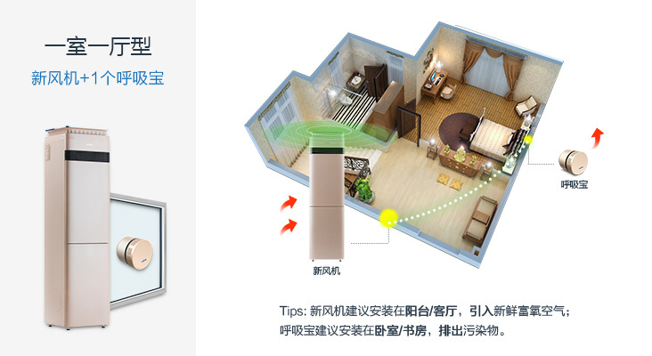 皓庭新风的不同之处在于系统中增加了“呼吸宝”组件,这是一个可以形成局部负压的排气通道,将其安装在各个卧室的窗户上,利用正负压差的原理,实现整栋房子的通气循环。