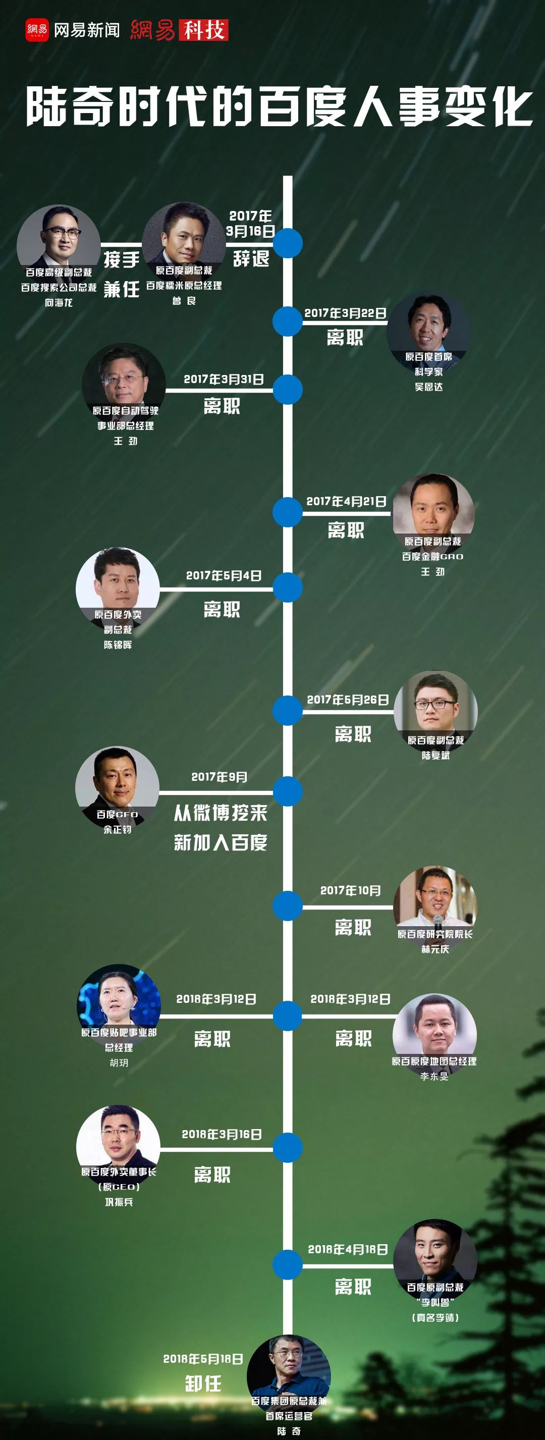 而到了2018年3月,百度的人事变动更为激烈:3月12日,百度贴吧事业部总经理胡玥被曝光已经离职;同日,百度地图事业部转入百度AI技术平台体系(AIG),百度地图总经理李东旻因个人原因离开公司。