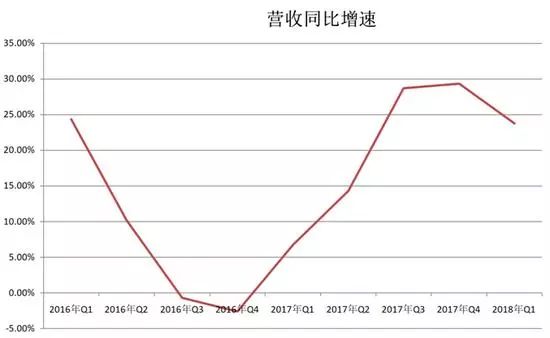而在陆奇上任后,2017年第一季度,百度营收168.91亿元,同比增速从上个季度的-2.61%变为6.76%;随后四个季度的同比增速分别为14.29%、28.69%、29.34%、23.78%。