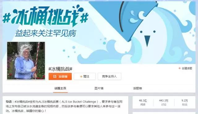 前面提到的冰桶挑战,其实一开始和渐冻症无关,它只是一个你要么浇冰水要么随便向哪个慈善机构捐款的公益活动。
