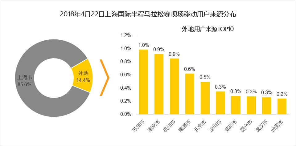 1、上海半程马拉松比赛吸引外地用户超10%,主要为周边省份和北深一线城市