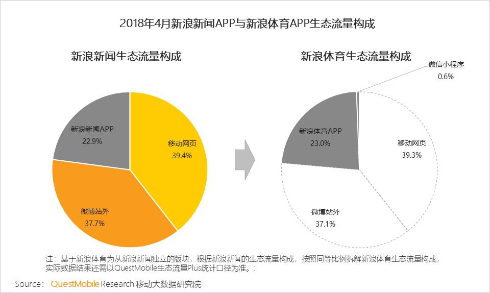 以新浪体育作为示例,生态流量构成中,小程序在对APP的流量拉动上还未体现。