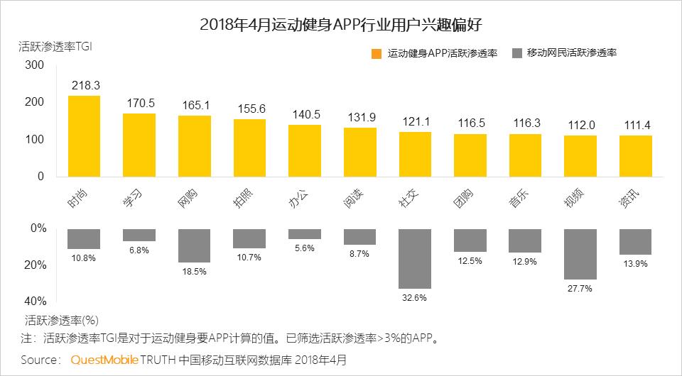 QuestMobile数据显示,爱运动的人在各个领域都有较为明显的偏好,相对为更爱生活人群。