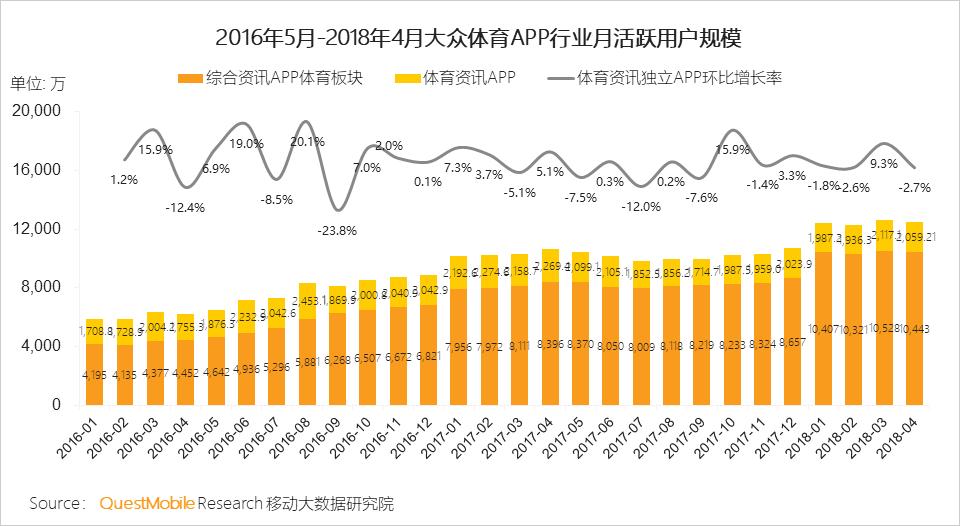 1、综合资讯APP仍是用户获得体育资讯的主要平台,垂直平台增长平缓