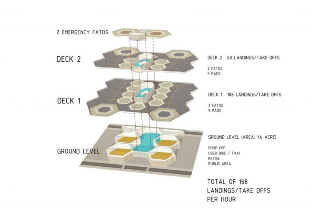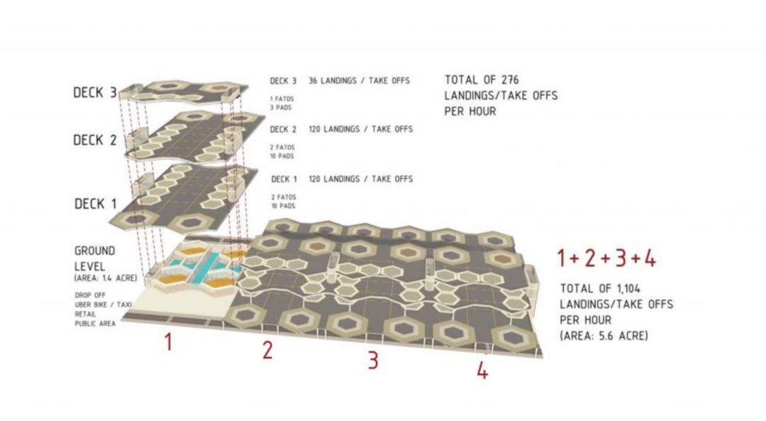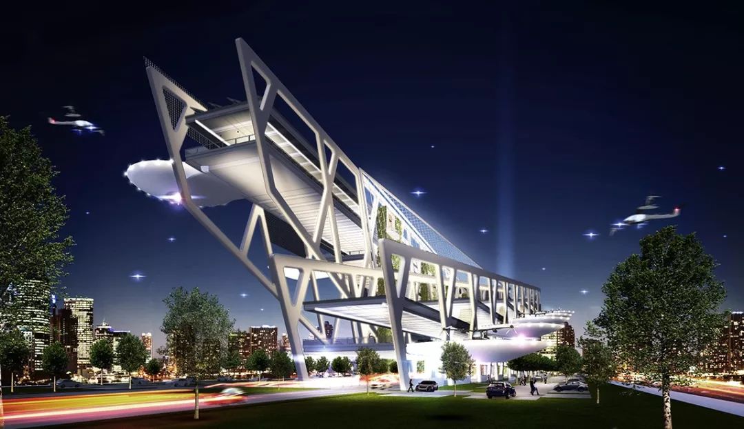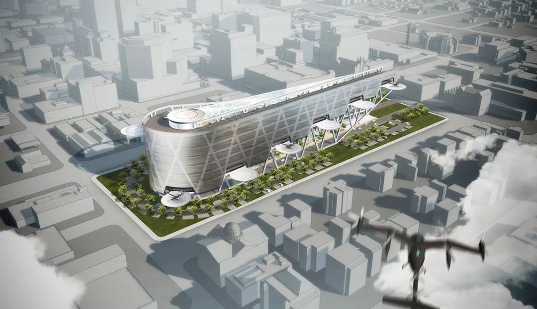 并且要自己建这些飞行器的停靠点Skyport,他们专门为这个航空港做了设计竞赛,这有点像我们城市里停车楼的概念。是一个枢纽和站点,不仅能起降飞行器,还要能充电并提供各种服务。