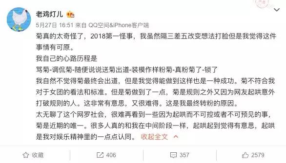 但她在发完这段话之后,下一秒又开始热情地继续赞叹「我菊真优秀」。
