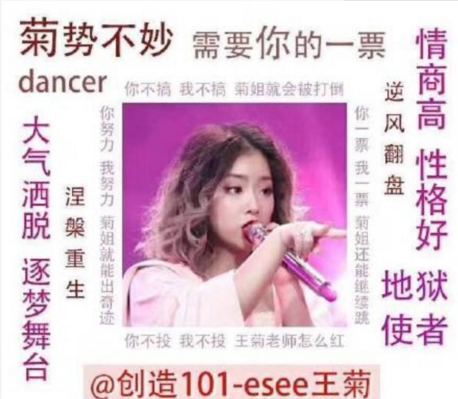 “如果说女团的火爆就是因为她们满足了直男们对于女神的幻想,那么王菊作为异军突起的代表,便是填补了同志们的审美空缺。如果王菊被淘汰,就不会再有0看了,创造101就只能是创造11了。”