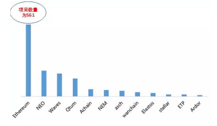 主网上线项目中,Ethereum平台上线项目数量最多,NEO平台上线项目数量位居第二,Waves平台上线项目数量位居第三。