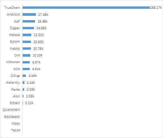 主网已上线项目日均交易额占流通市值比例(5月18日数据)
