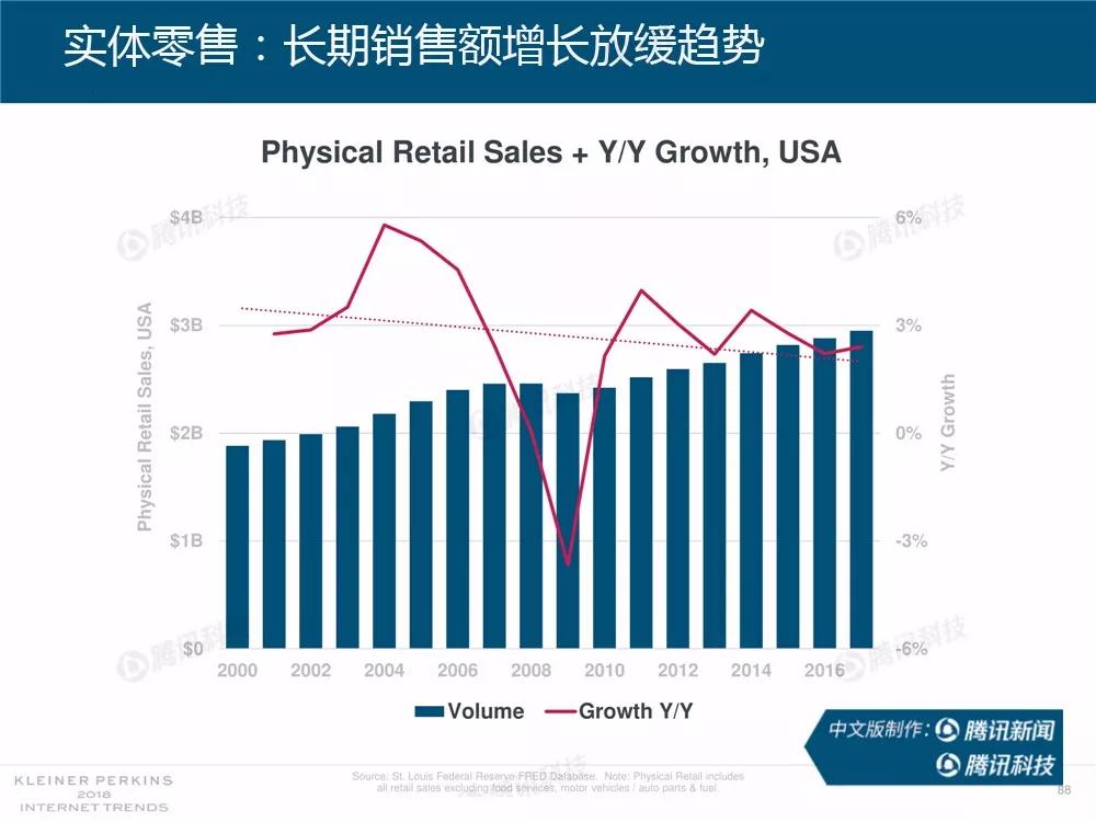 电子商务销售额增速依然在增加。2017年美国电商销售额增长了16%,高于2016年的14%。亚马逊去年占据美国电商销售总额的28%。与此同时,实体零售销售额仍然在下滑。