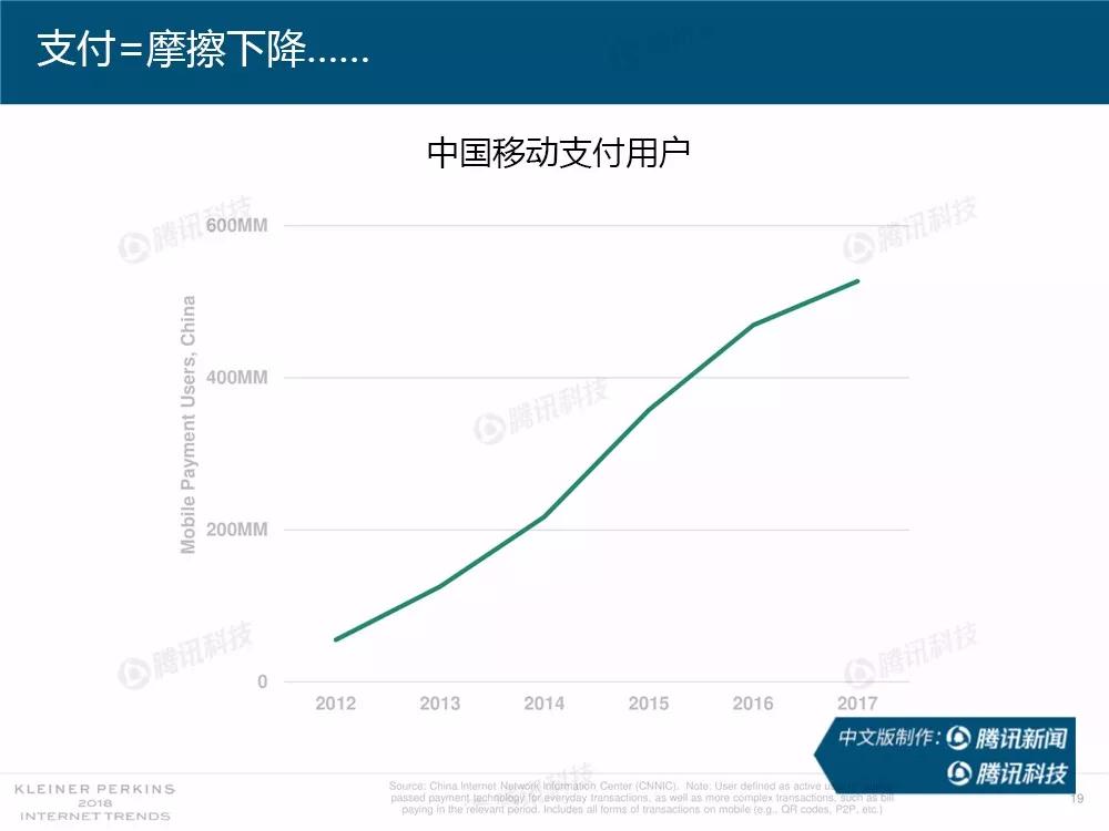 移动支付变得越来越容易完成。在移动支付的普及率上中国继续引领全球,2017年移动支付用户超过5亿人。