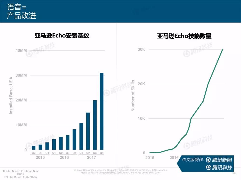 亚马逊Echo等语音控制产品正在蓬勃发展。Echo在美国的安装基数已从2017年第三季度的2000万人,增长至2017年第四季度末的3000万人以上。
