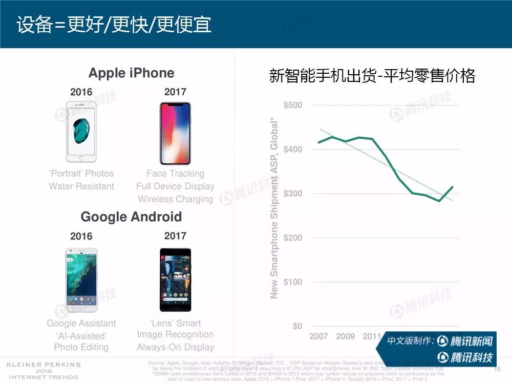 尽管售价达1000美元的iPhone和三星电子Galaxy Note等高端机型上市,全球智能手机的平均销售价格仍在不断下滑。手机售价的降低,帮助欠发达市场的智能手机普及率得到了提升。