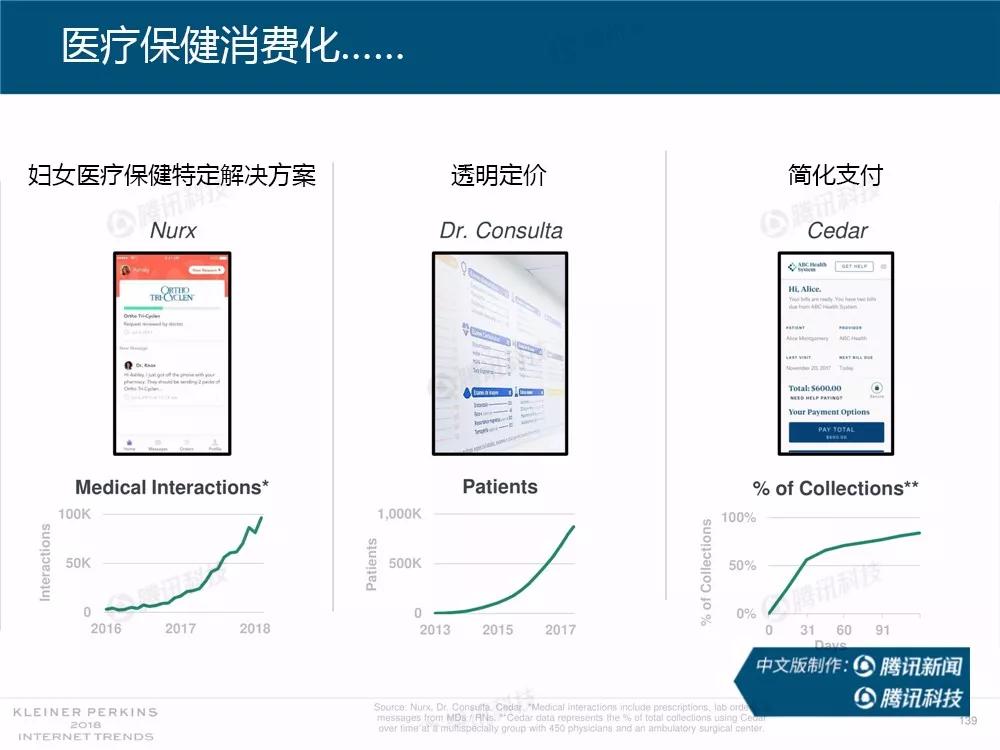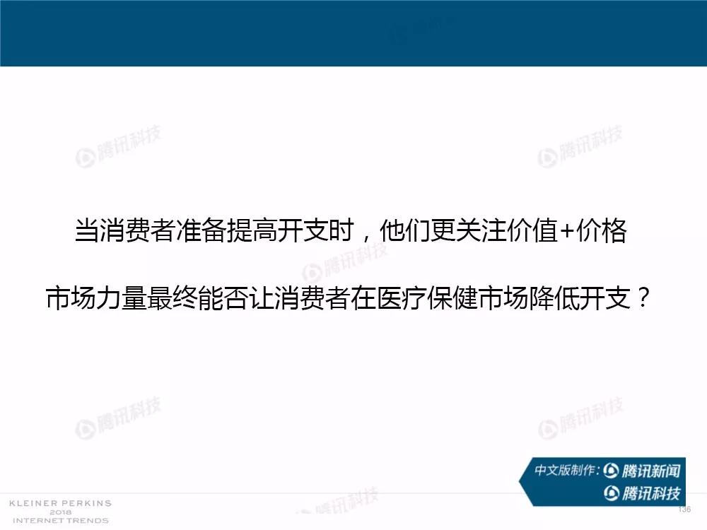 米克尔问道:“市场力量最终会不会转向医疗保健,促使降低面向消费者的价格?”预计医疗保健公司会提供更现代的零售体验,提供方便的办公室、数字化交易和按需药房服务。技术分裂的速度正在加快。美国人用了大约80年的时间才采用洗碗机。消费互联网在不到十年的时间里变得司空见惯。