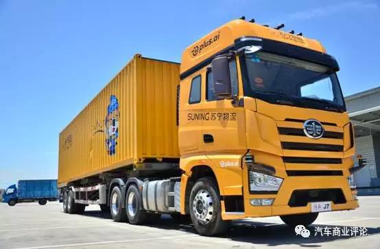 从图片上看,苏宁的无人重卡是在一汽解放的车辆上改装的,而一汽解放于2017年10月完成国内首次高速公路L3级智能车辆路试,并在2018年4月获得国内商用车“智能网联汽车道路测试牌照”。