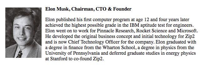 1997年Zip2网站上,埃隆·马斯克的个人简介。