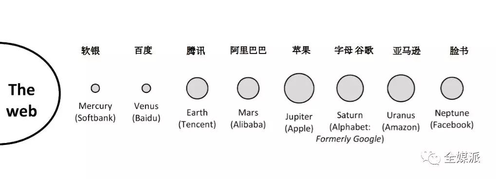 网络世界中,“行星”诸如谷歌、亚马逊、苹果之类的特大型市场领军者,较小的“天体”则是潜在的竞争对手以及他们的客户。而随着互联网公司的日渐繁荣,他们开始形成自身的引力场,吸引越来越多的顾客和用户,用户网络越大,引力就越强,发展速度也开始加快。