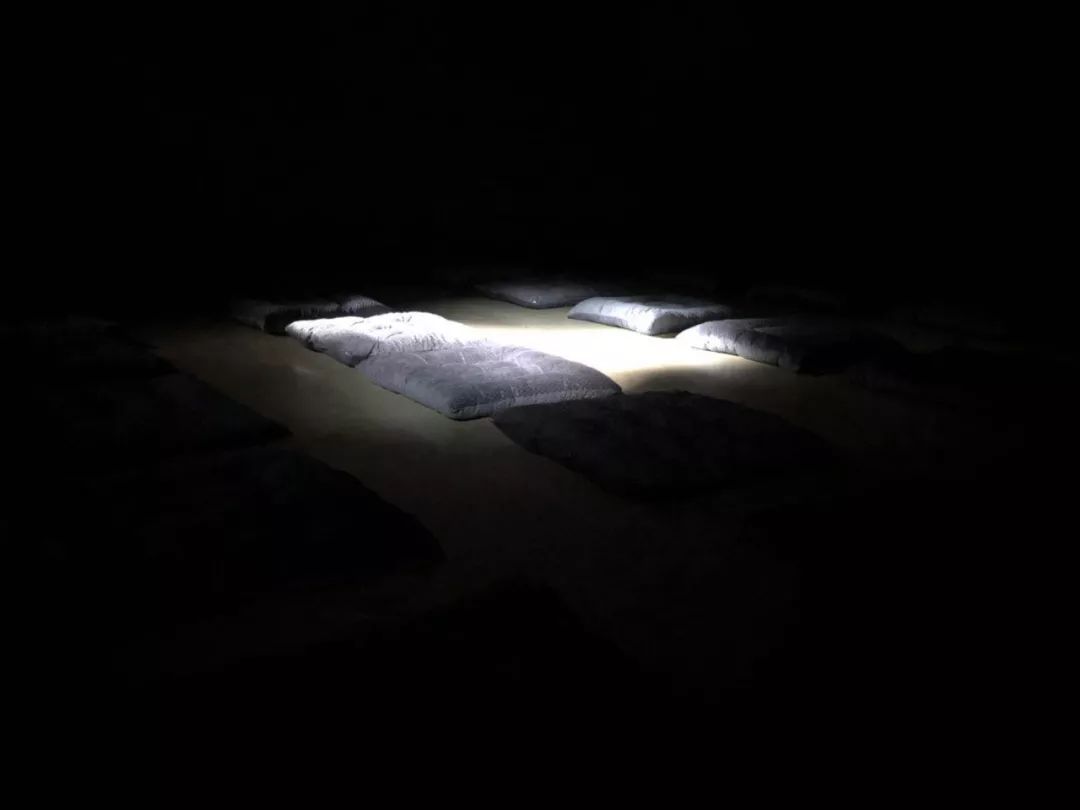 空间上,我们在现场搭建了一间伸手不见五指的漆黑屋子,用来打造 Magic Moment。全黑留足想象空间,突然一盏聚光灯大量一张水彩画,又冲击十足。