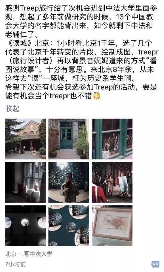Treep 是一个站在「人文历史与旅行交汇点的产品」,他们是主打人文旅行的企业。比如我最喜欢的 Treep 的线路,是跟着建筑方面很专业的人士一起按照梁思成「中国建筑师」的思路去山西。