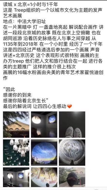 两周前,Treep 在中法大学旧址办了一场会发声的艺术展。他们通过 16 幅画,将北京这座城市读给了去到现场的朋友。