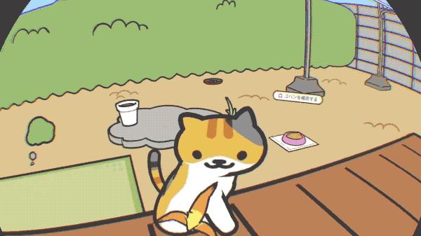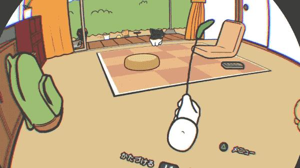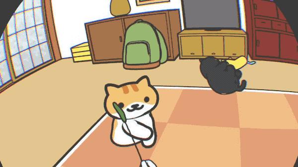 在之前的手游版中,大部分时间里用户只能摆摆道具然后隔着屏幕看,却没有办法和纸片猫互动。为了满足广大的“吸猫人士”,这次开发商 Hit-Point 在 VR 版中加入了一项机能,让玩家可以充分利用 VR 模式,以第一人称视角“置身”于纸片猫的世界里,并“亲自”体验一番逗猫棒的乐趣。