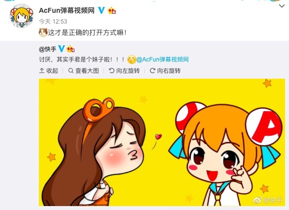 快手和A站也看到了这一切,马上在微博上秀起了恩爱。