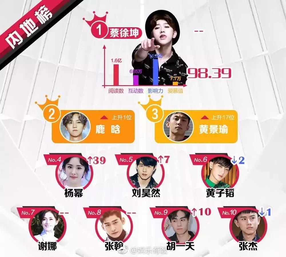 百度指数和微信指数跟TFboys、鹿晗等不相上下,在新出炉的明星内地榜单中稳居首位,这些数据榜单都表明他是名副其实的顶级流量小生。