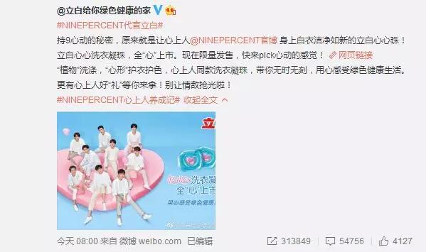 自Nine Percent宣布出道后,全部的工作重心都在围绕广告和代言展开,给观众留下的印象不是在拍广告,就是在拍广告的路上,爱奇艺承诺的团综《百分九少年》也从最开始的5月11日推迟到5月31日,现在又延迟到7月10日,粉丝们对此怨声载道,网友调侃,Nine Percent这九个人最大的作品就是各式各样的广告。他们短期被消费的可能是最巅峰的人气价值。