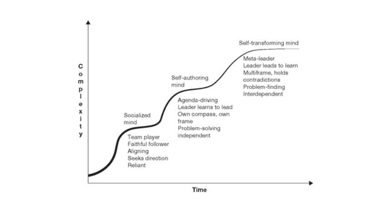 这种观点后来被成人发展领域所颠覆,纵向研究显示,与儿童相似,成人也经历了一系列普遍而可预测的发展阶段,如下图所示,罗伯特·凯根的模型创造了一个新的发展过程。