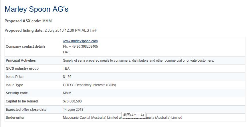 澳大利亚证券交易所的Marley Spoon的IPO信息