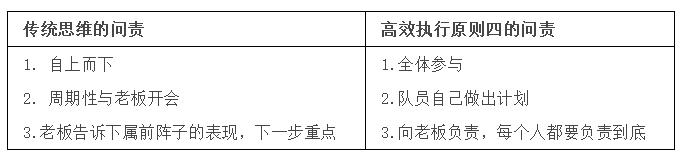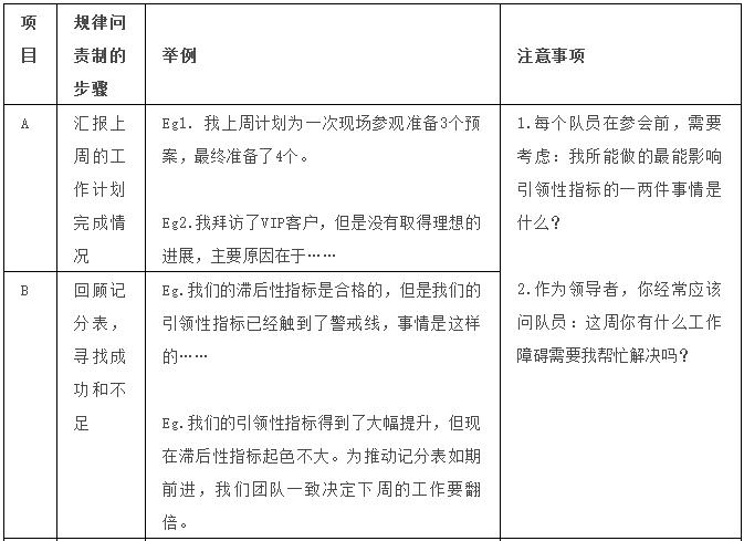 总结一下:规律问责制,只要求你对自己本周的工作计划负责,你在这个最重要目标会议上只需要回答: