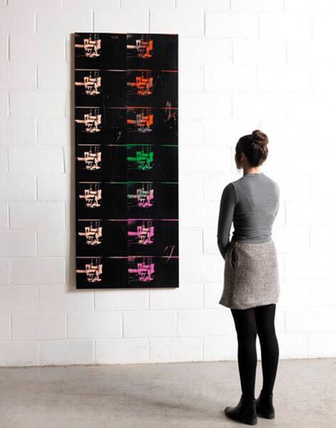 《14张小电椅》是波普艺术代表人物——沃霍尔,于1967年为斯德哥尔摩当代美术馆的“个人回顾展”而创作,作品高度约2米。在2016年2月伦敦邦瀚斯“战后及当代艺术”专场拍卖会上,这幅作品的估价在400万英镑-600万英镑之间,约合530万美元-800万美元。