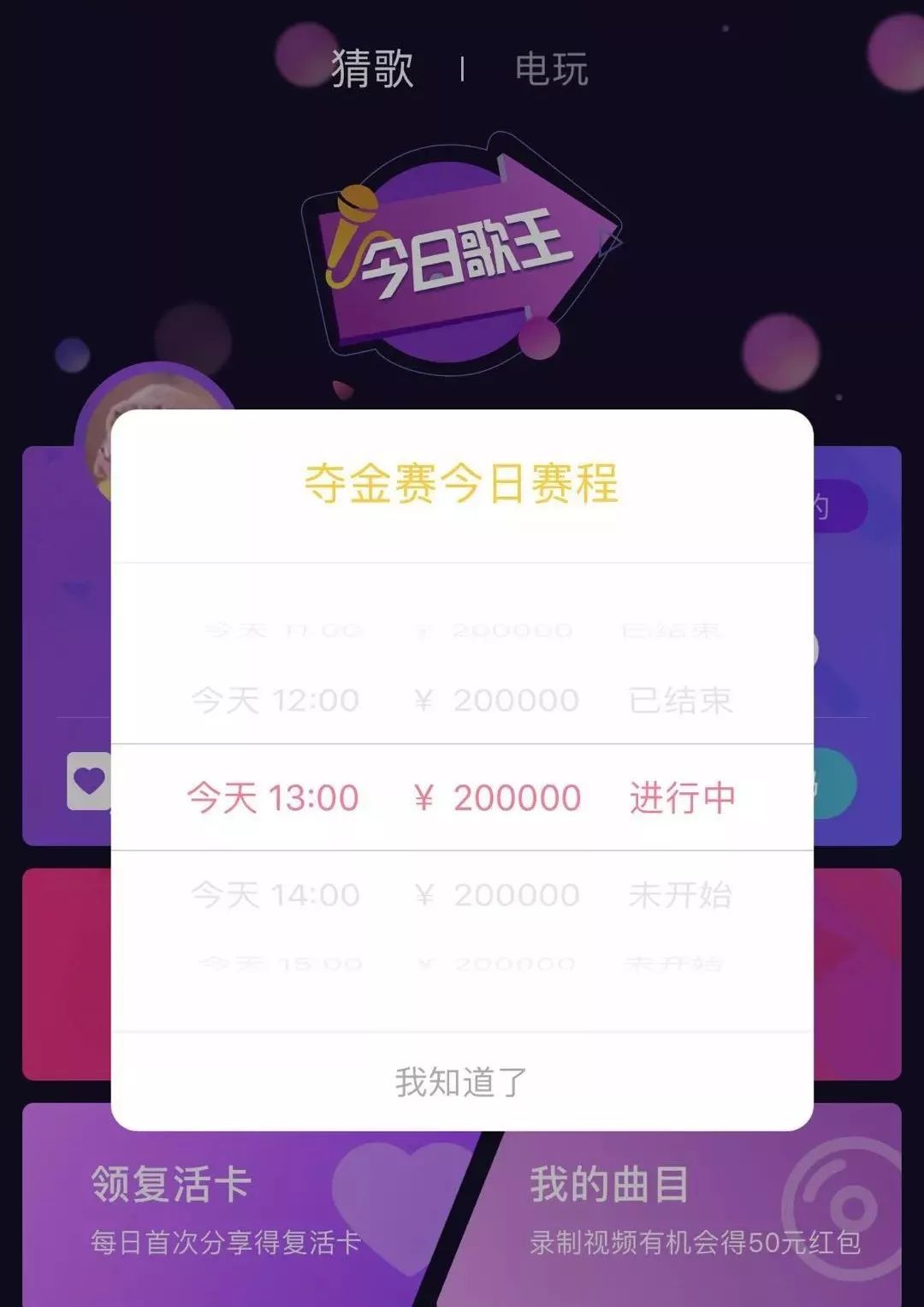 “我当然知道啊,因为我也在玩,就是‘猜歌名赢奖励’的今日歌王嘛。”