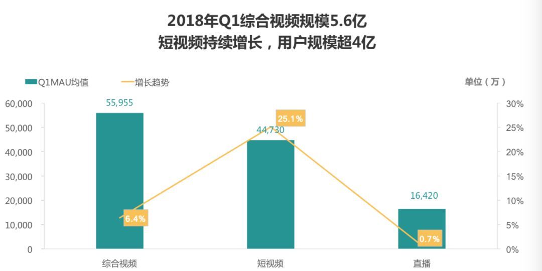 毕竟短视频仍居风口,据Trustdata移动大数据监测平台,2018年Q1短视频持续增长,用户规模超4亿,日均启动次数明显优于综合视频及视频直播,最高达7.78次。